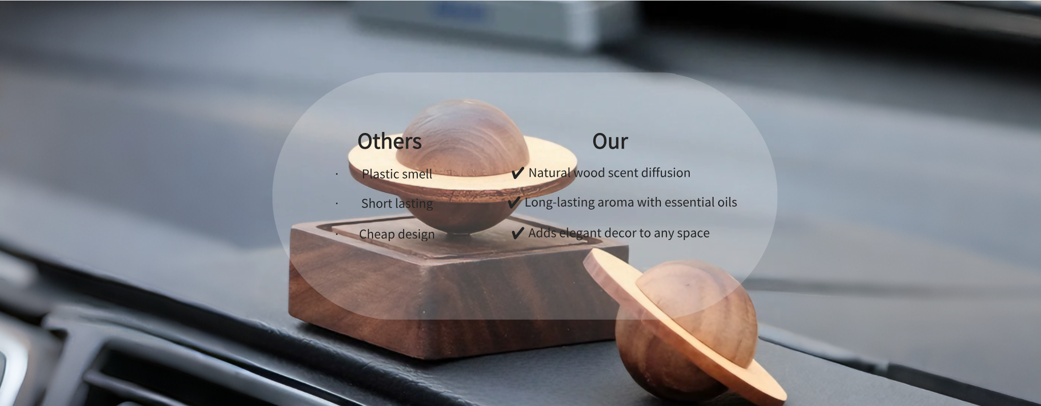Experience the subtle, natural aroma of real walnut wood in your vehicle. No chemicals, no noise, just pure tranquility.